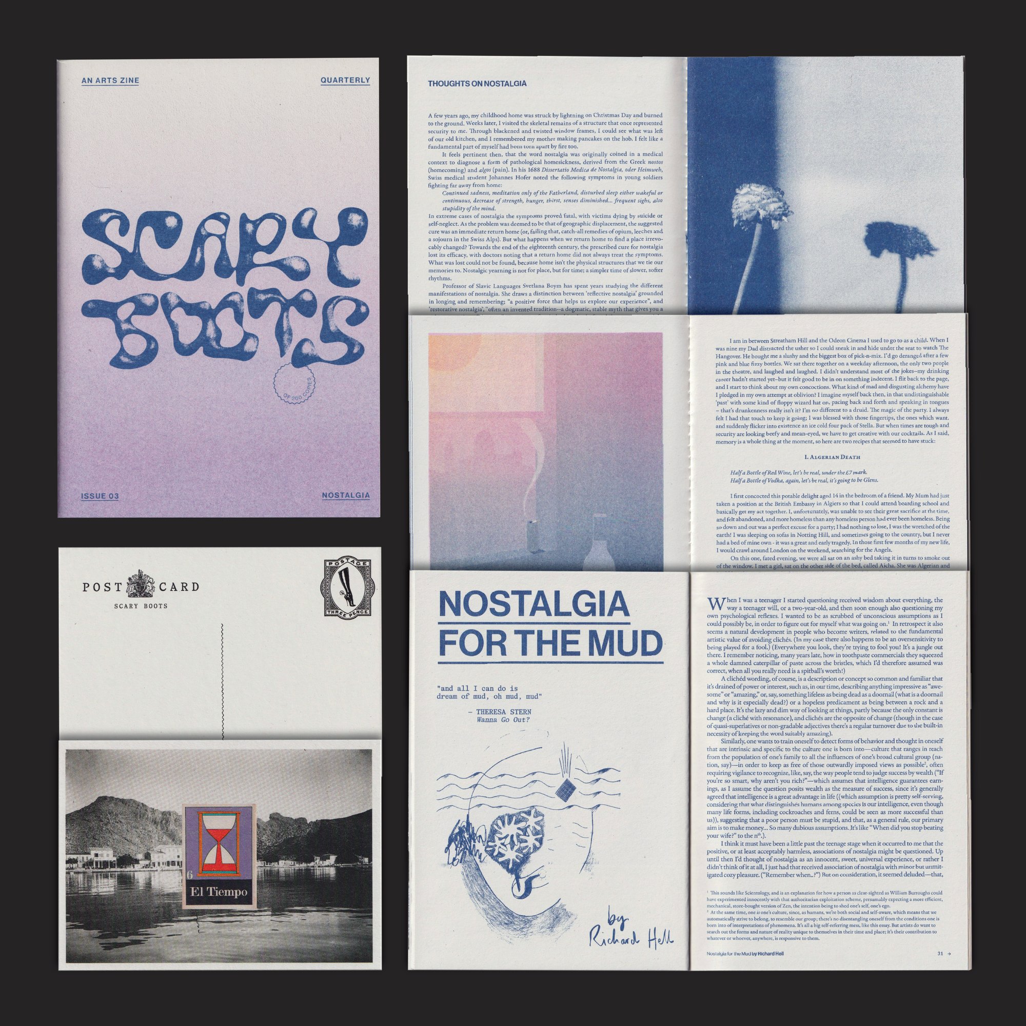 The third issue of Scary Boots zine invites collaborators to respond to the theme of nostalgia. Featuring poetry, photography, short stories and essays on subjects including caterpillar infestations, ketamine boofing, bioluminescent fish, Dazed and Confused, houses burning down, back of the car naps, The Little Mermaid and much more….